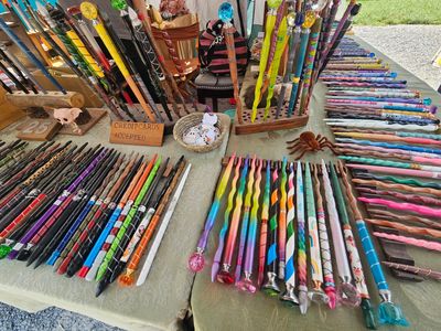 Hand crafted walking sticks, wands, pendants, wood spirits, story sticks and more, many with Celtic or Germanic themes.